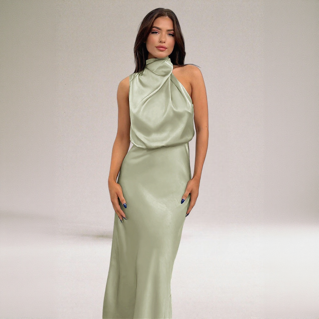 Design: Robe longue en satin avec décolleté licou