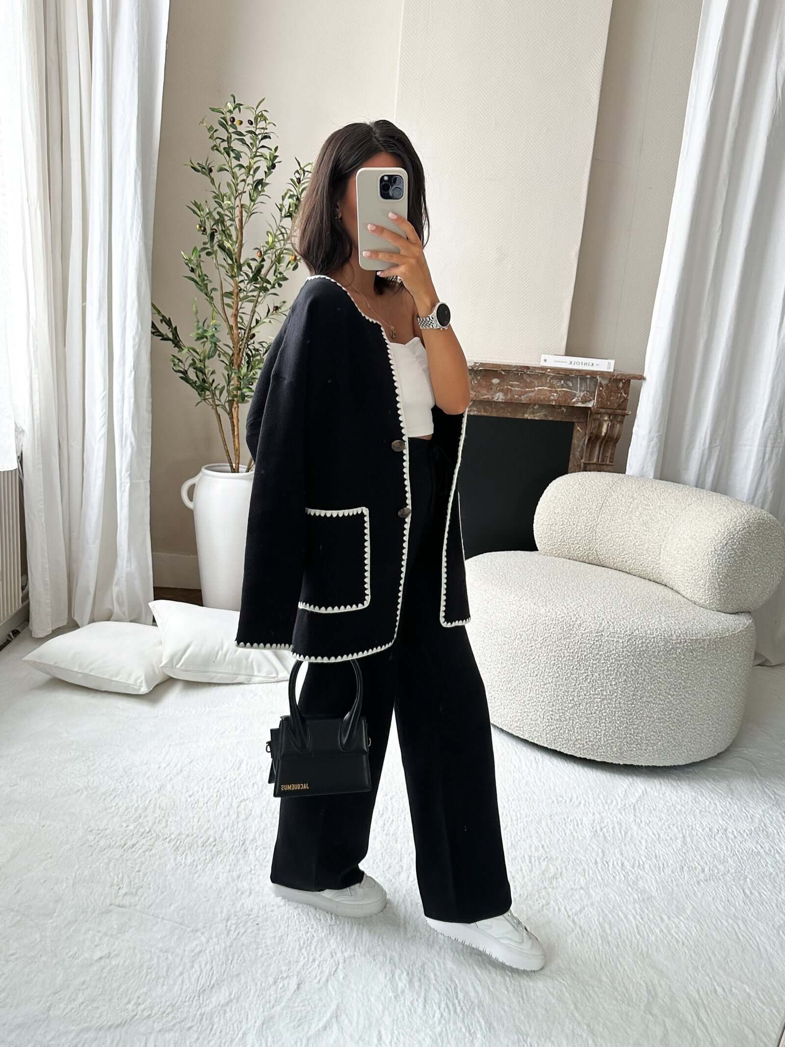 Nos matières de haute qualité offrent confort et durabilité, tandis que des détails et des finitions soigneusement sélectionnés ajoutent une touche de sophistication à votre style. Avec cet ensemble, vous vous sentirez prête à vous démarquer et à exprimer votre style unique.